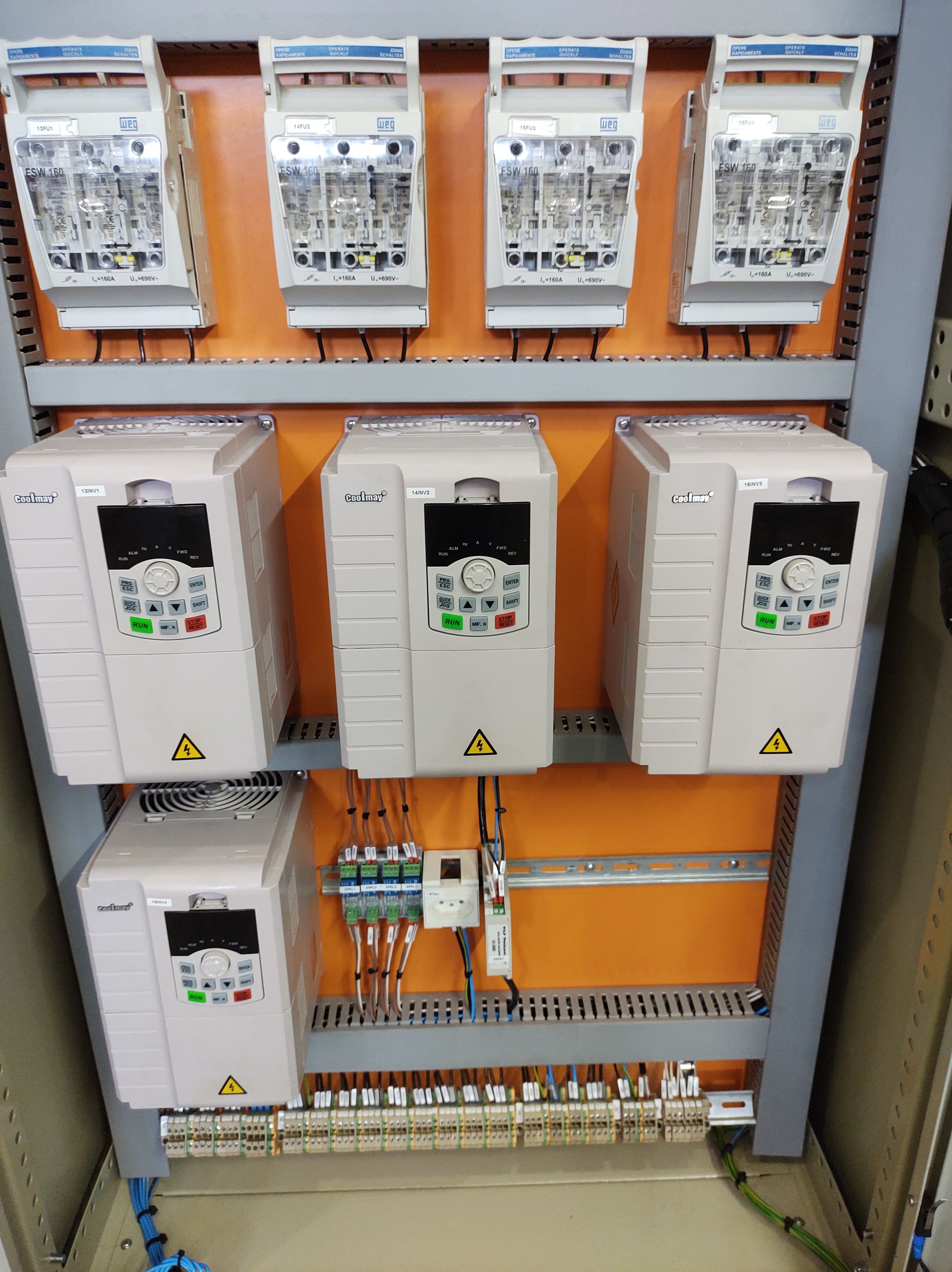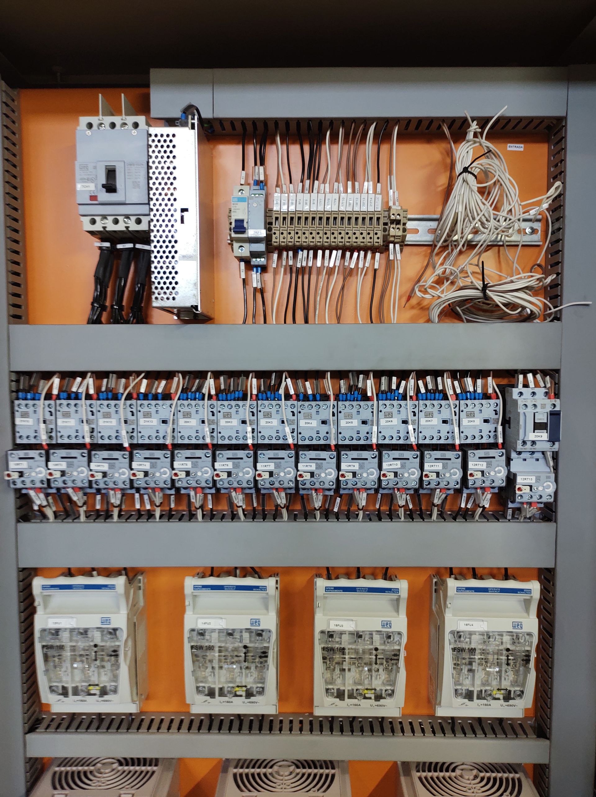 - Diferencial Técnico: Nossa montagem de painéis preza pela organização impecável (anilhagem de cabos, identificação de bornes e layout otimizado), o que facilita manutenções futuras e reduz o tempo de máquina parada.